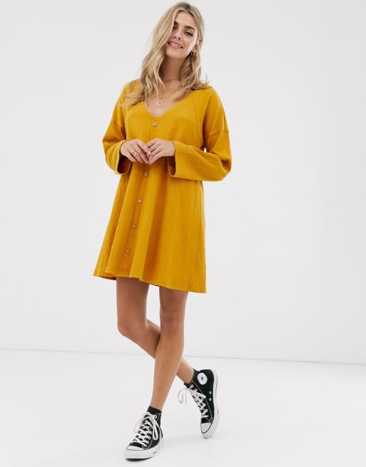 ASOS DESIGN mini button through swing dress in texture