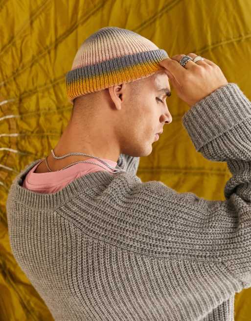 ASOS DESIGN mini fisherman ribbed beanie in pastel space gradient stripes