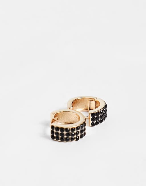 ASOS DESIGN mini hoop earrings in gold tone with black crystals