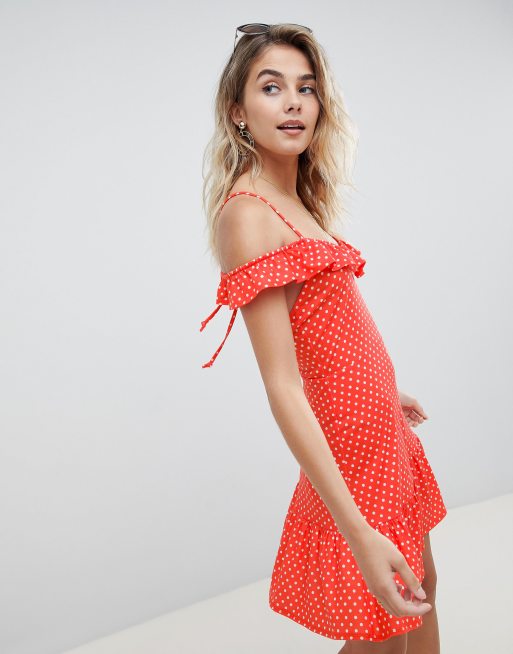 ASOS DESIGN mini sundress with frill open back in polka dot