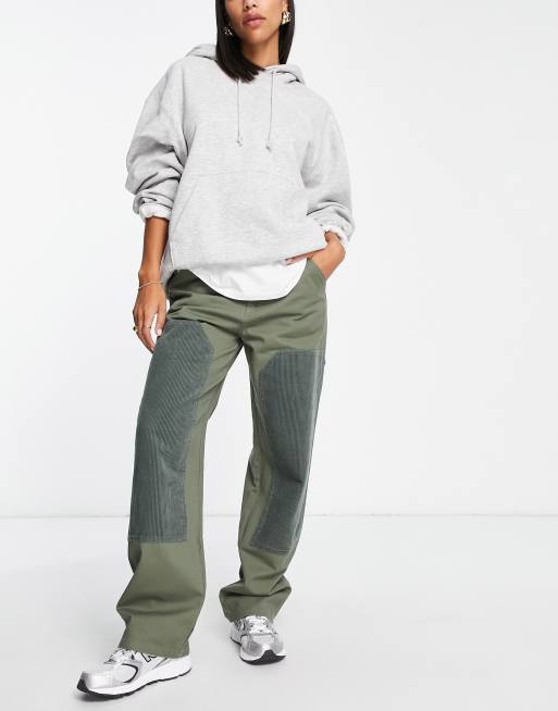 ASOS DESIGN minimal cargo trouser with patchwork cord in khaki