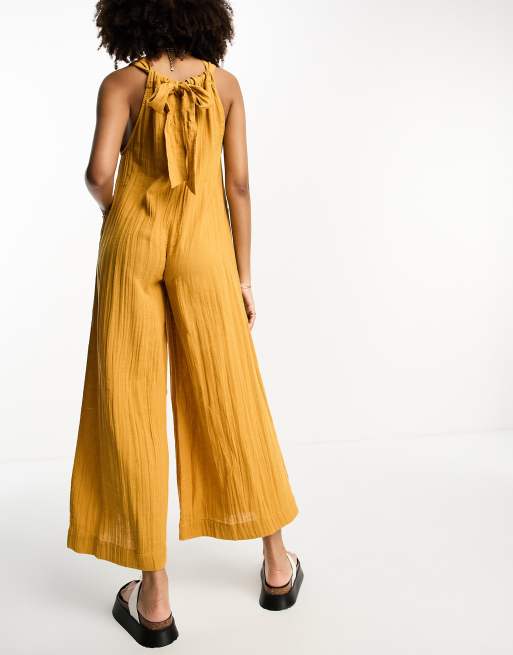 ASOS DESIGN minimal crinkle dungaree jumpsuit in mustard