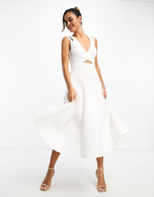ASOS DESIGN minimal wrap seamed prom midi dress in ivory