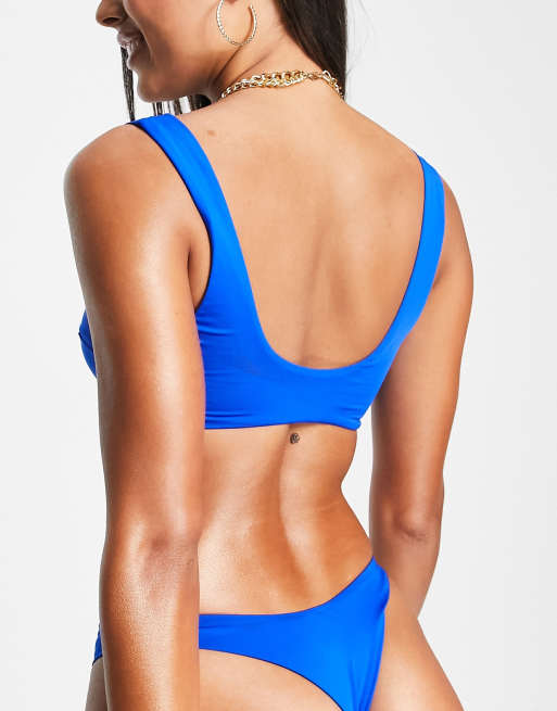 ASOS DESIGN mix and match sleek crop bikini top in cobalt blue
