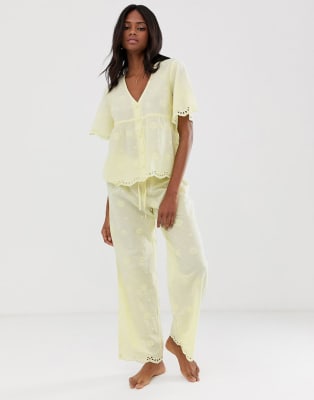 ASOS DESIGN mix & match broderie pyjama smock top & trouser