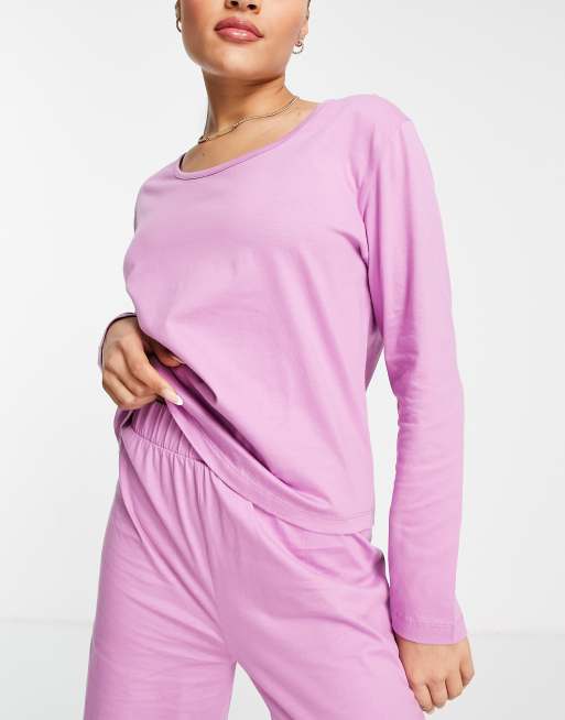 ASOS DESIGN mix & match cotton long sleeve pyjama top in lilac - LILAC