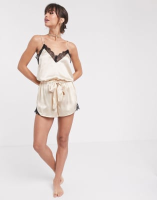 ASOS DESIGN mix & match lace & satin cami & short set