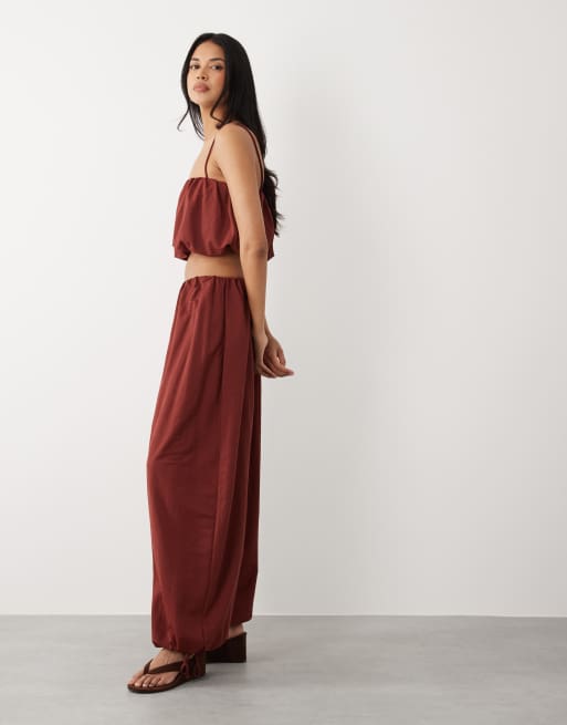 ASOS DESIGN mix & match linen look balloon trousers in rust red