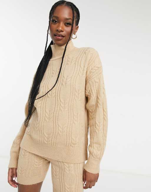 ASOS DESIGN mix & match lounge knitted cable knit sweat in beige