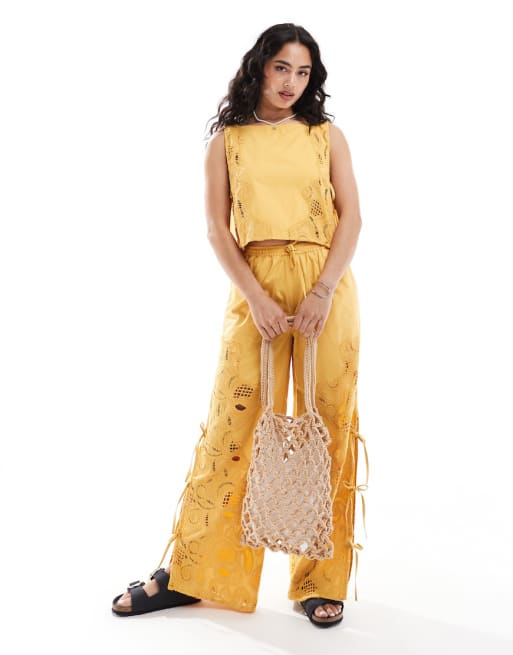 ASOS DESIGN Mix & Match premium cutwork co-ord in yellow