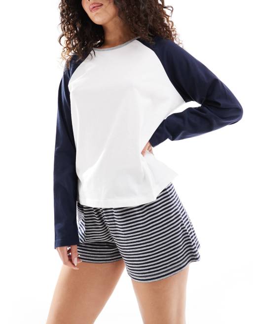 ASOS DESIGN Mix & Match preppy long sleeve pyjama top in white & blue