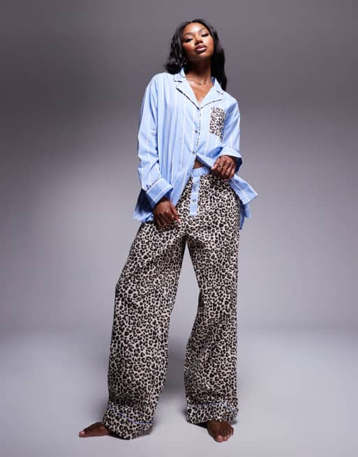 ASOS DESIGN mix &match woven stripe and leopard print pyjama trouser
