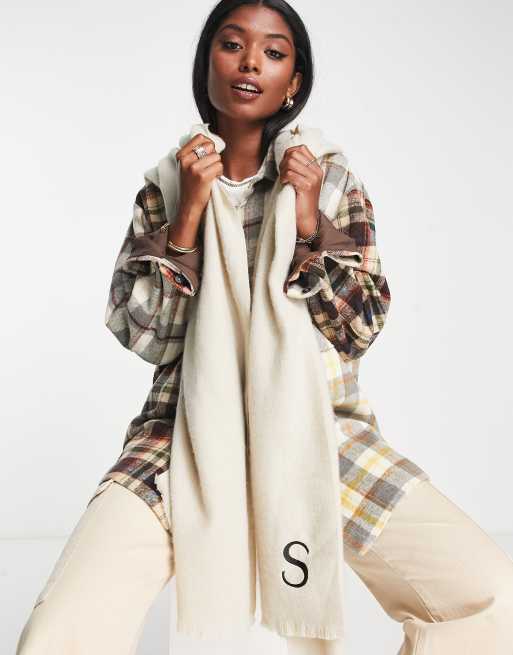 ASOS DESIGN monogram scarf with S initial in light stone