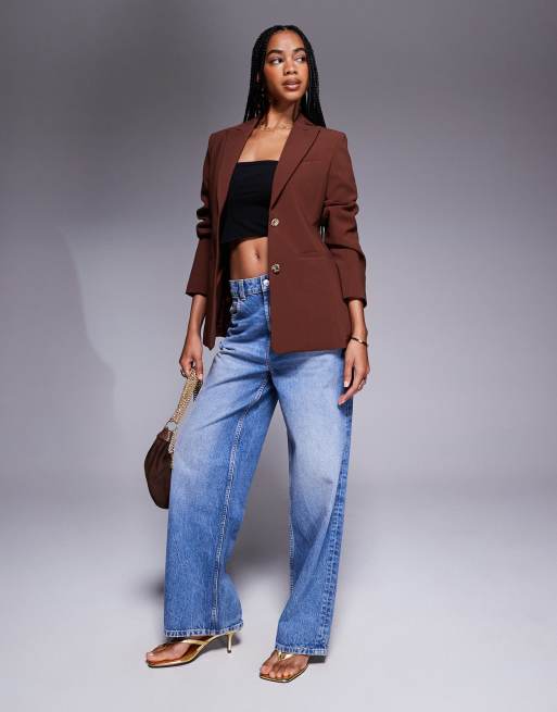 ASOS DESIGN moulded hip blazer in chocolate