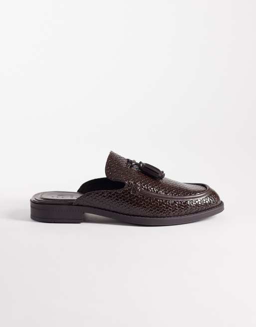 ASOS DESIGN mule loafers with tassel in brown embossed