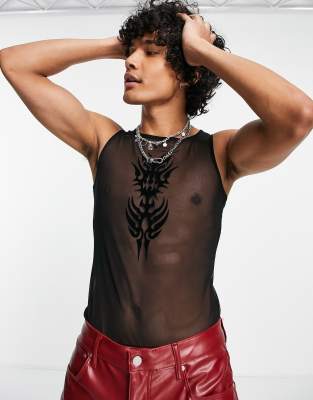 ASOS DESIGN muscle fit bodysuit in mesh with print - BLACK