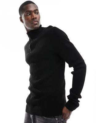 ASOS DESIGN muscle fit knitted essential 1/2 zip jumper in black