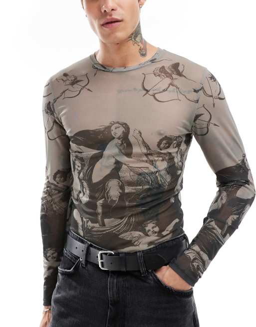 ASOS DESIGN muscle fit long sleeve in renaissance AOP print
