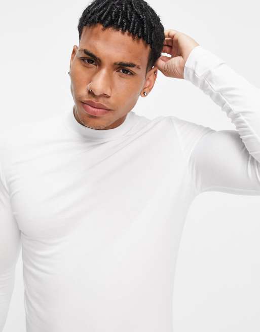 ASOS DESIGN muscle fit long sleeve jersey turtle neck in white