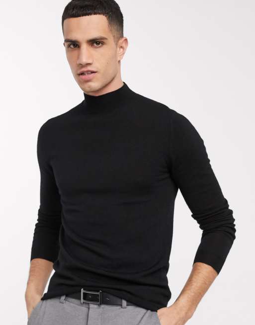ASOS DESIGN muscle fit merino wool turtle neck jumper in black