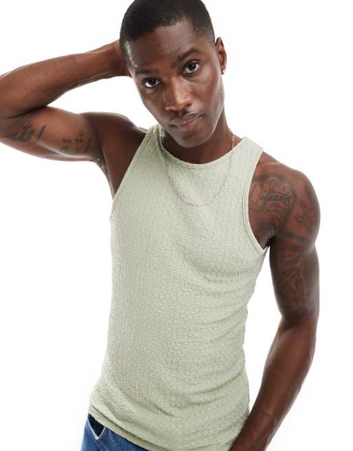ASOS DESIGN muscle fit neck vest in crinkle texture