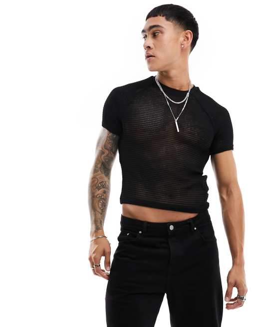 ASOS DESIGN muscle fit raglan t-shirt in black texture