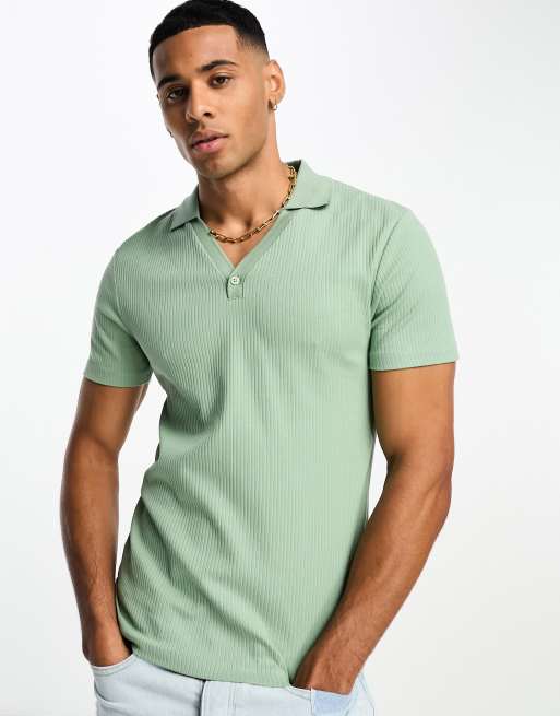 ASOS DESIGN muscle fit ribbed polo in washed green