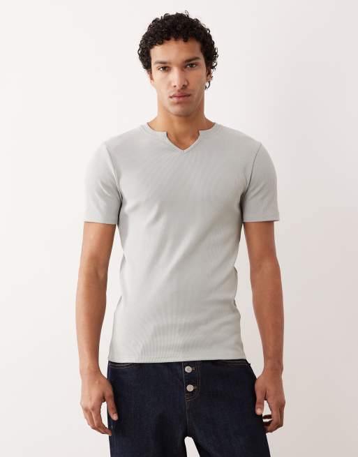 ASOS DESIGN muscle fit t-shirt with notch neck in light green rib