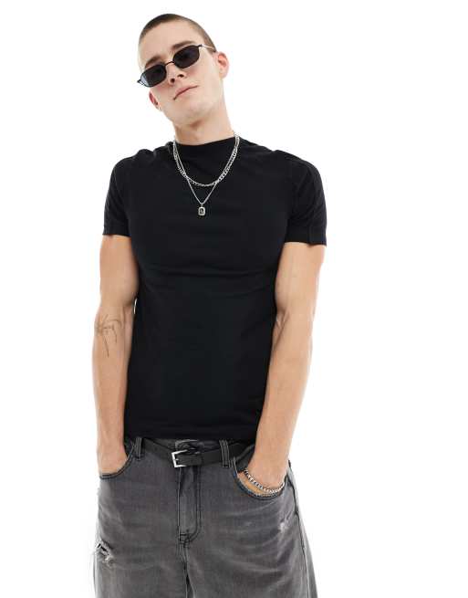 ASOS DESIGN muscle fit t-shirt with rib panelling in black