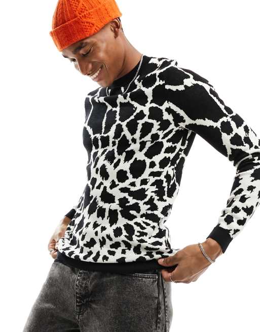 ASOS DESIGN muscle knit jumper with black giraffe print