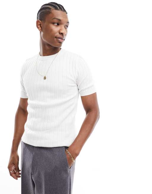 ASOS DESIGN muscle lightweight knitted rib t-shirt in white