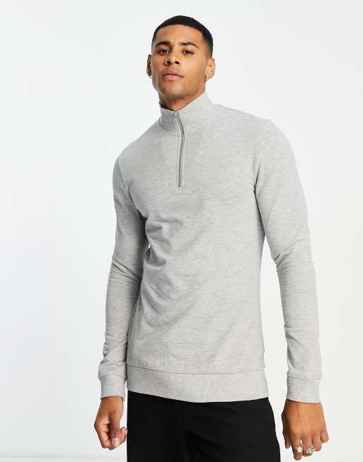 ASOS DESIGN muscle quarter zip sweatshirt in grey marl