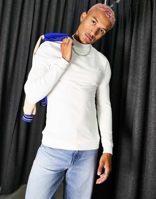 ASOS DESIGN muscle sweatshirt with turtle neck in white