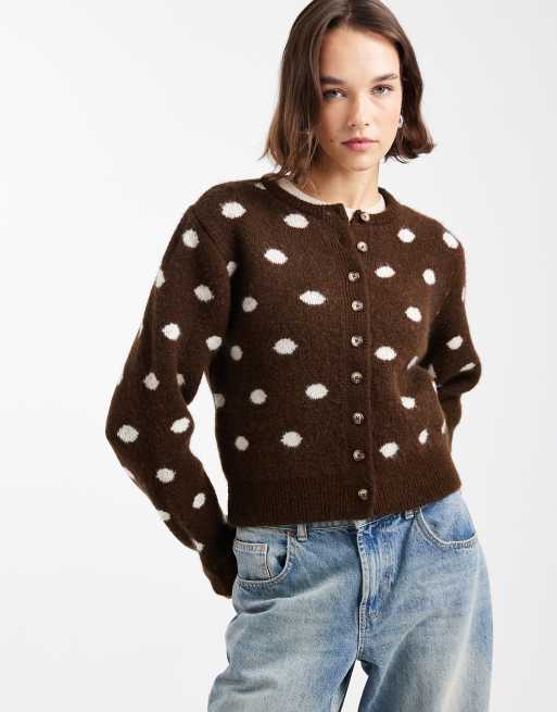 ASOS DESIGN neat fit polka dot cardigan in brown