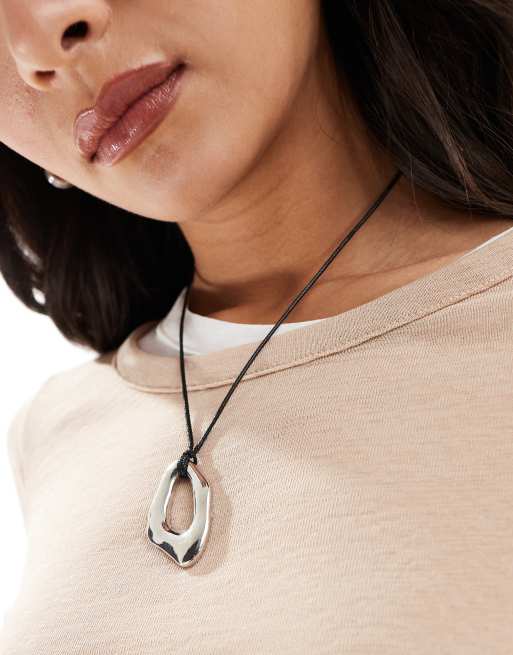 ASOS DESIGN necklace with cord and molten pendant in silver tone