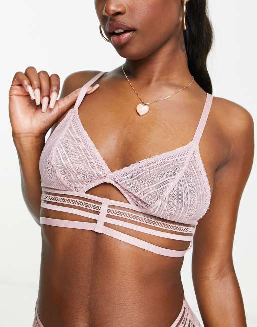 ASOS DESIGN Nettie filament and fishnet soft bra in dusty pink