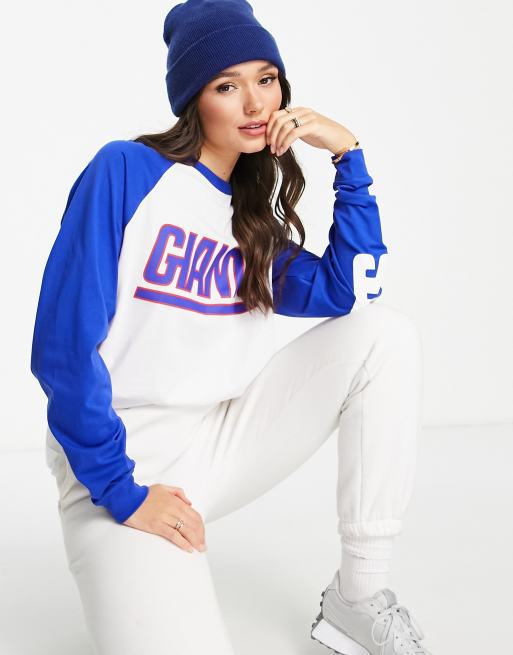 ASOS DESIGN New York Giants oversized graphic raglan tshirt in blue