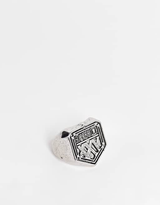 ASOS DESIGN NFL Superbowl signet ring in silver tone