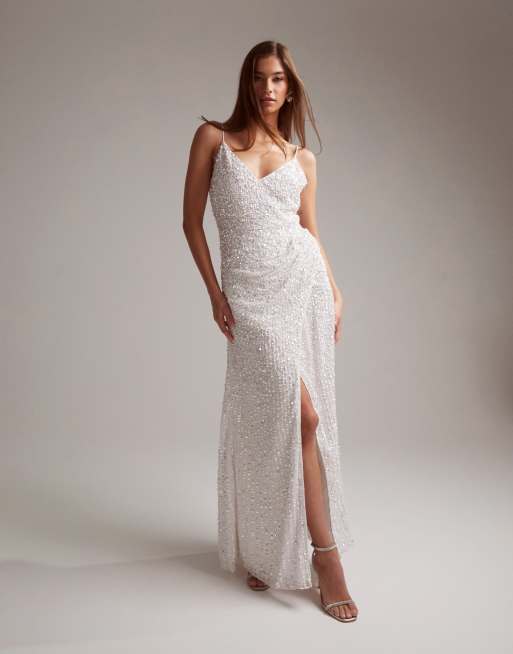 ASOS DESIGN Nia embellished drape side cami maxi wedding dress in