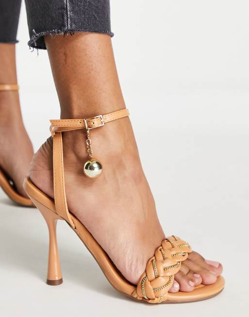 ASOS DESIGN Noa plaited round toe high heeled sandals in camel