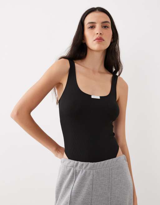 ASOS DESIGN Nora rib soft body with tab detail in black