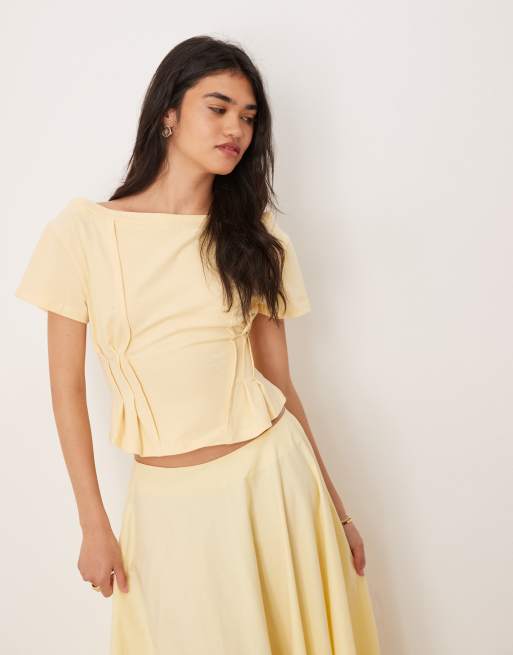 ASOS DESIGN off shoulder cinched waist detail tee in yellow