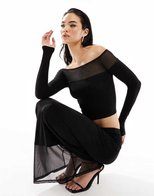 ASOS DESIGN off shoulder mesh panel top co ord in black
