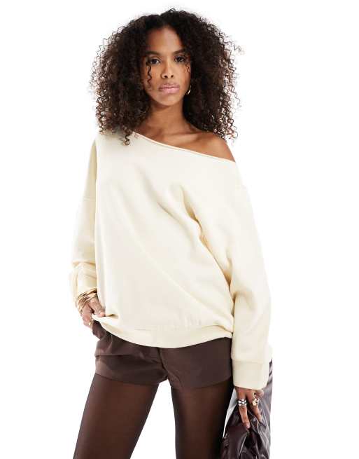 ASOS DESIGN off shoulder oversized sweatshirt in white