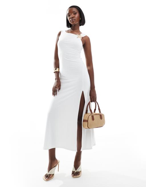 ASOS DESIGN off shoulder starfish trim maxi dress in white