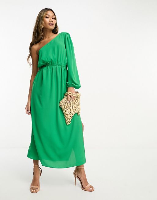 ASOS DESIGN one shoulder cut out midi dress in bright green