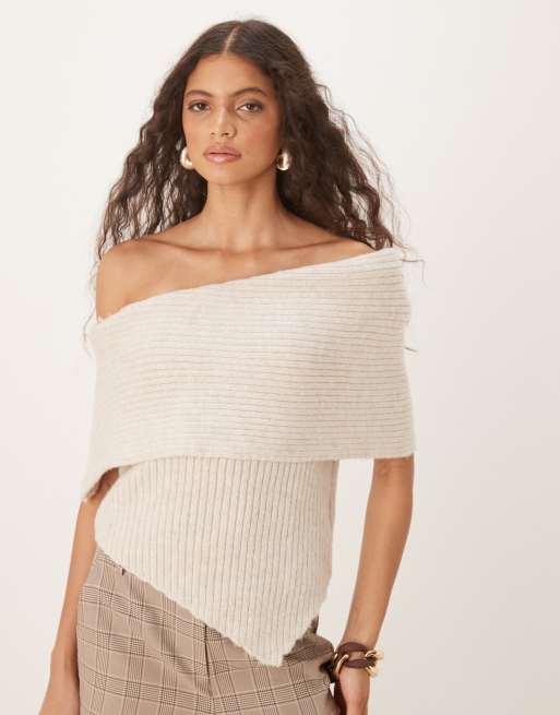 ASOS DESIGN one shoulder knitted top in oatmeal