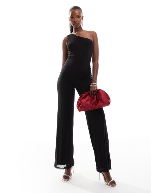 ASOS DESIGN one shoulder mesh wide leg jumpsuit in black