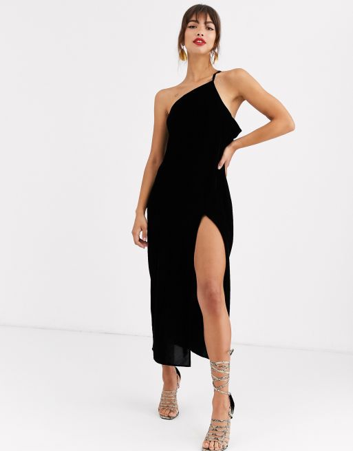 ASOS DESIGN one shoulder midaxi dress in velvet with drape back