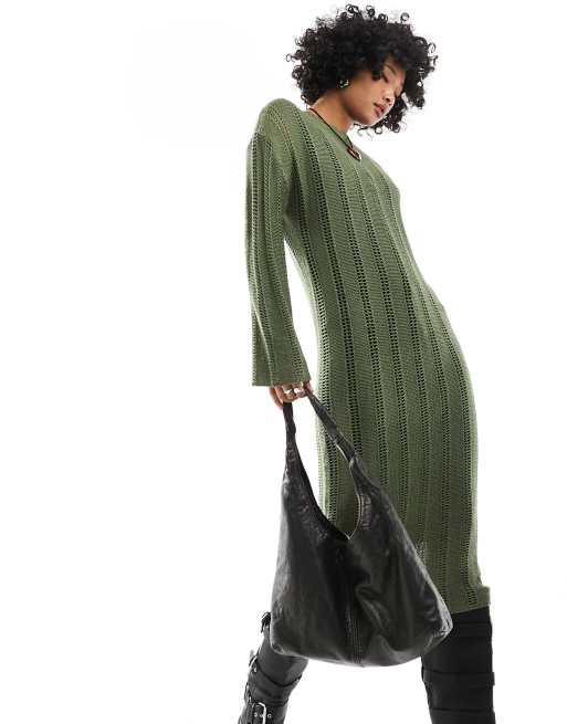 ASOS DESIGN open stitch knitted midi dress in khaki